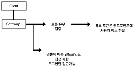 각 서비스 서버에 접근을 하려면 클라이언트는 gateway를 무조건 거쳐야 한다. 게이트웨이를 통해서 각 엔드포인트에 접근이 가능하기도 하고, 때로는 조건을 만족하지 못하면 블락을 당한다. 그렇다면 게이트웨이에서 jwt를 검증을 하게 한다면 어떨까. 그렇게 되면 검증은 모두 한곳에서 이뤄지게 되고, 각 서비스단에선 중복으로 jwt 검증관련 코드를 가지고 있지 않아도 된다. 토큰관련 정책이 변경이 되어도 게이트웨이와 인가인증만 신경쓰면 되므로 유지보수 관점에서도 나쁘지않은 선택으로 보인다.