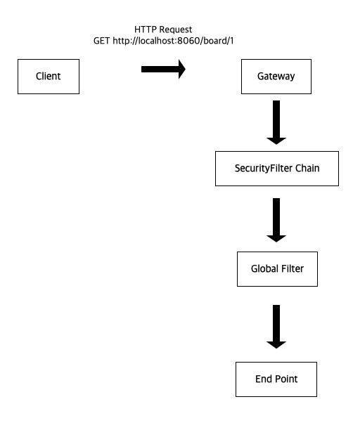 토큰 검증과 접근제한이 가장 큰 키 포인트이다. 근데 이 두가지는 사실 시큐리티와 글로벌필터의 역할이 겹친다. 게이트웨이의 GlobalFilter단에서도 토큰검증과 접근자의 path에 접근을 시켜줄지 말지, 접근범위 정책을 작성을 하고, 스프링시큐리티도 토큰 검증과 접근 범위제한의 역할을 하게되기에 서로 역할이 겹치는 상황이다. . 해당 포인트에서 고민을 많이하게 되었는데 게이트웨이의 동작 순서에 따라서 역할을 나누게 되었다. 동작 순서는 다음과 같다.